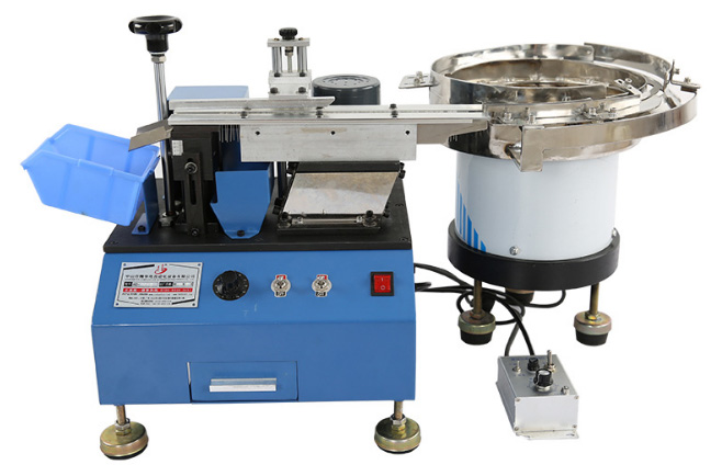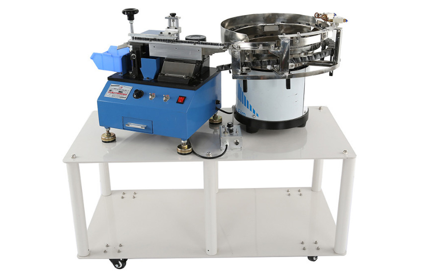 ◆ 此機種加裝可調高軌道的震動盤送料器,震動盤組的輸送軌道可調整寬度以便適用于不同規格零件之送料,使其適用于生產線對多種規格需大量剪腳加工的需求。