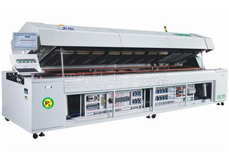 8、頂蓋氣壓升起裝置:便于焊膛清潔,當需要對回流焊機進行清潔維護,或生產時發生掉板等 狀況時,需將回流爐上蓋打開。