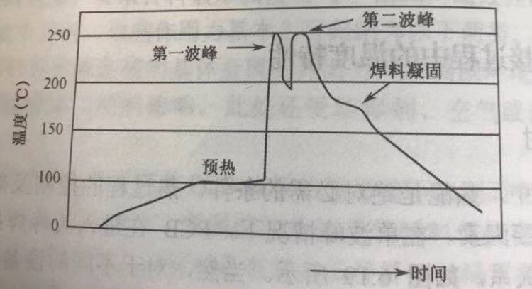 雙波峰焊接時設(shè)備測量溫度曲線如圖所示
