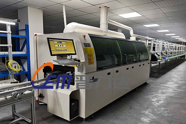 2022年5月8號河源潤科電子客戶采購我司大型承重爪波峰焊THT插件焊接整線,包含插件線,出板臺,流水線;型號:G-350DS-LF。河源潤科電子主要經營:電子產品、光電產品的研發、生產、加工;