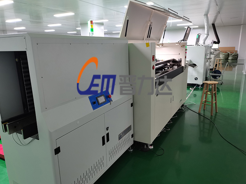 2022年7月16日廣東省惠州市鼎豐泰科技有限公司采購我司晉力達整條SMT FPC柔性新能源汽車連接線焊接生產線,用于國內BYD新能源汽車內部連接線,產品特點柔性,產量大,并帶有FPC專用合成石與固定不銹鋼片吸熱載具,針對客戶這一要求,定制無需料框上下板機,為客戶節省大量占地面積,印刷長度2米的印刷機,橫向超長貼片機,12溫區單軌回流焊,接駁臺等等。