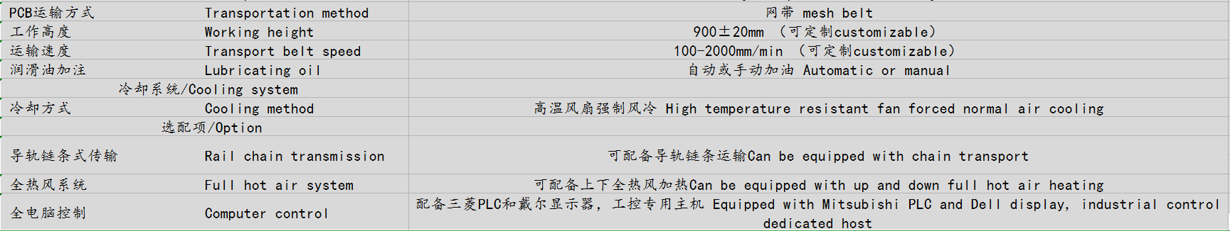 4、相鄰溫區差別MAX可達100℃,不串溫,每個溫區之溫度和熱風風速獨立可調節,運輸采用變頻控制、濕度控制精度可達±10mm/min,特別適合 BGA/CSP及0201等焊接